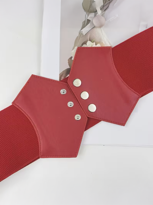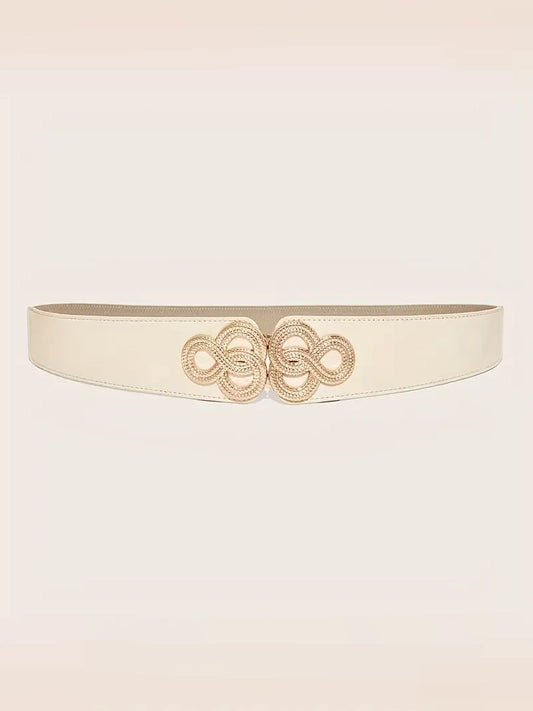 Wide Elastic Plus Size Belt with Metal Clasp in White