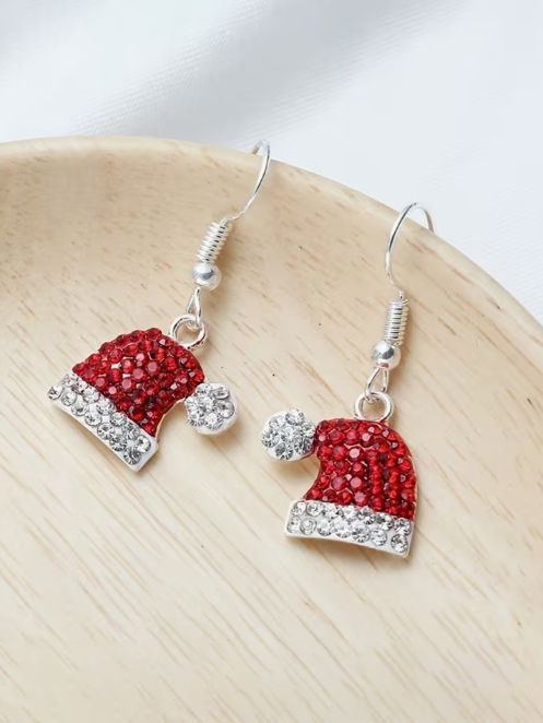 Rhinestone Santa Hat Earrings