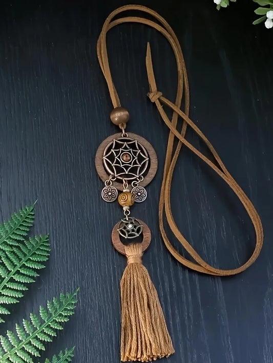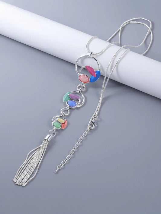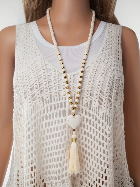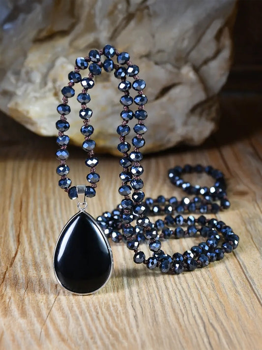 Handmade Beaded Long Pendant Necklace With Natural Stone