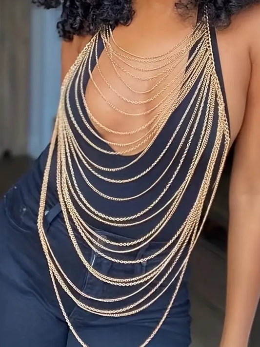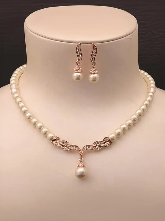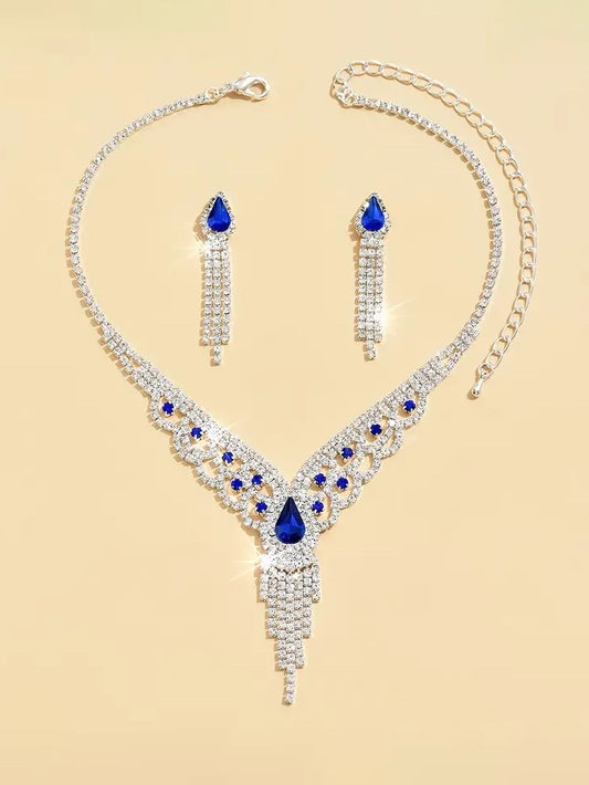 Rhinestone Tassel Necklace and Earring Set in Blue