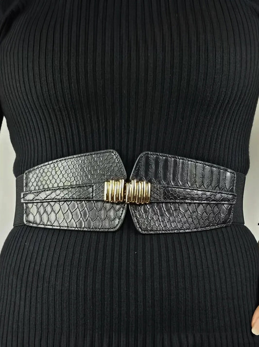 Plus Size Wide Elastic Belt with Metal Clasp in Black