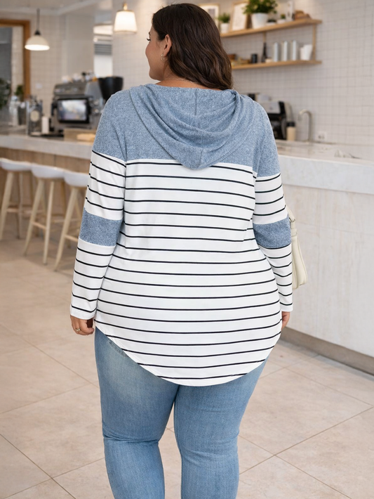 Sandra Stripped Plus Size Hooded Top