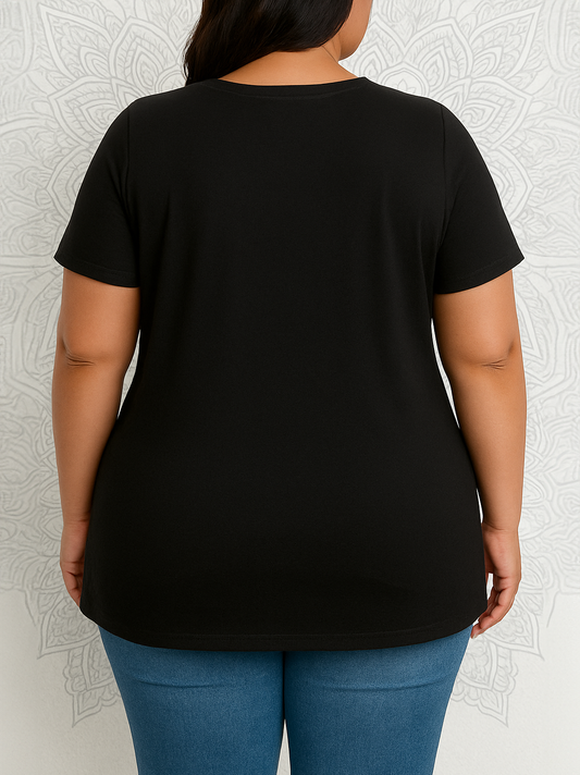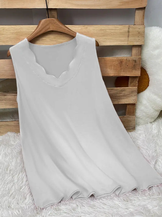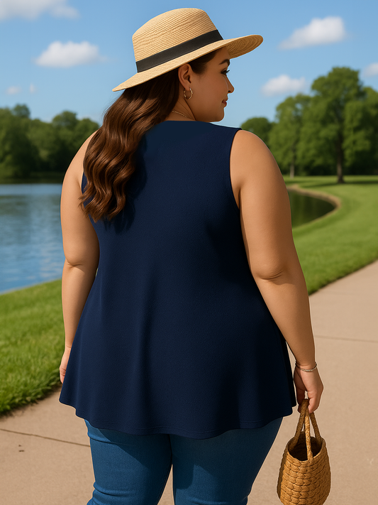 Gloria Scalloped V-neck Plus Size Tank Top in Navy