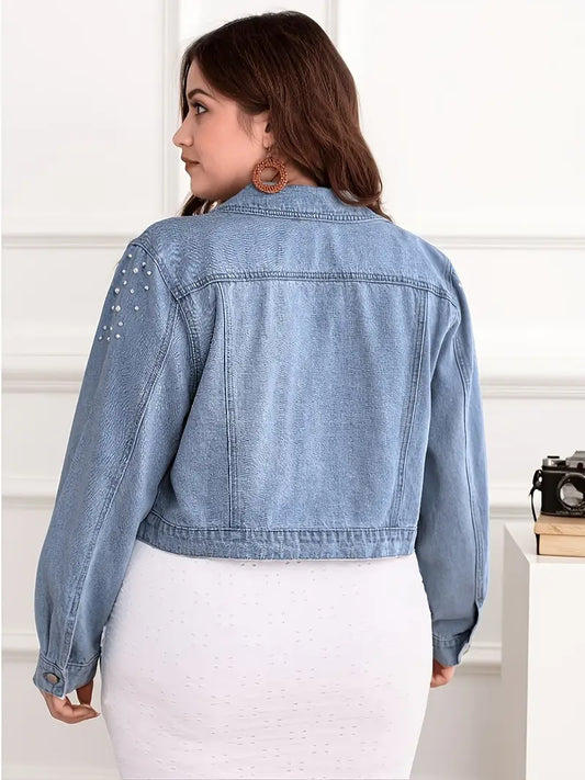 Fernanda Pearl Detail Plus Size Jean Jacket