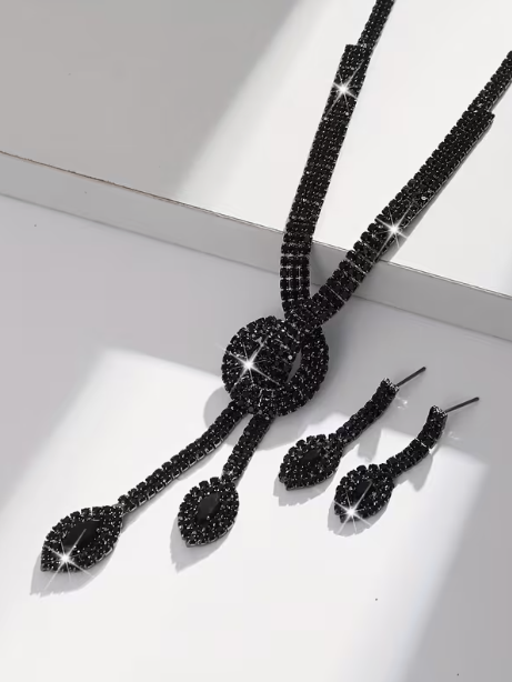 Rhinestone Necklace and Earring Set in Black