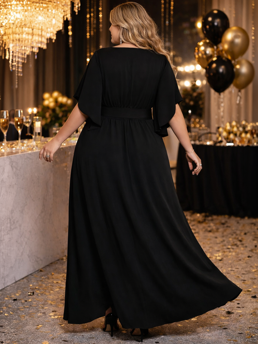 Senna V-Neck Plus Size Dress in Black