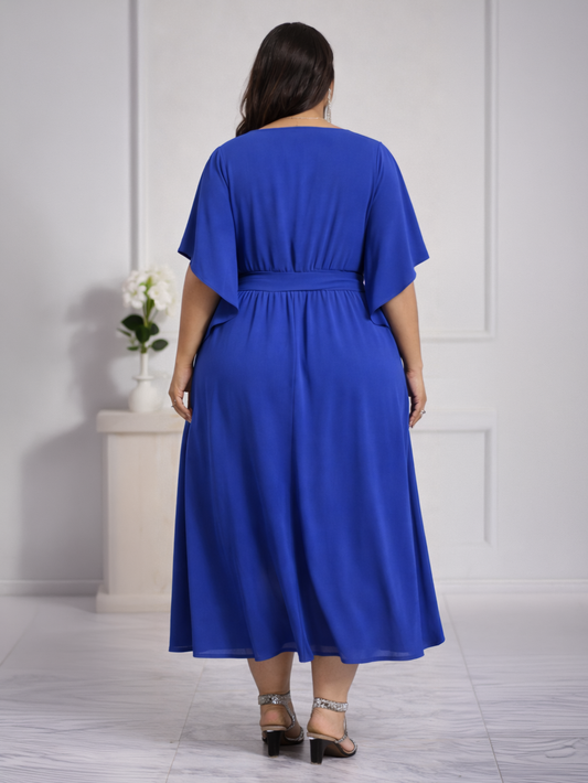 Senna V-Neck Plus Size Dress in Vibrant Blue