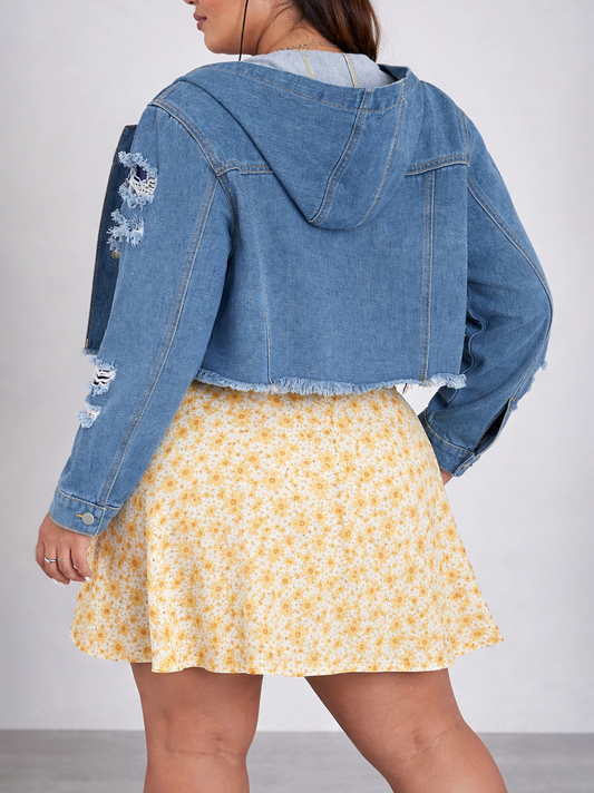 Distressed Hooded Plus Size Jean Jacket
