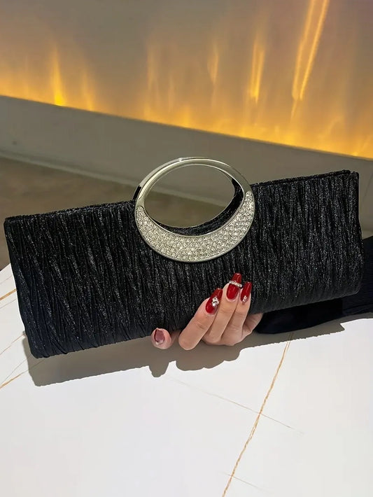 Ruched Satin Evening Clutch in Black