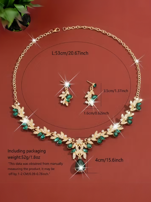 Elegant V-neck Emerald Necklace Set