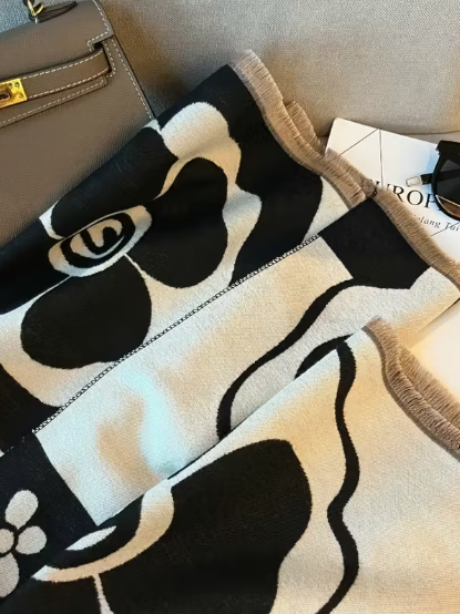 Bold, graphic, and effortlessly chic — this black and ivory wrap turns every outfit into a statement. Featuring oversized floral motifs and a dramatic draped silhouette, it layers beautifully over both casual and dressy looks. The reversible design gives you versatile styling options, offering two stunning sides in one piece.