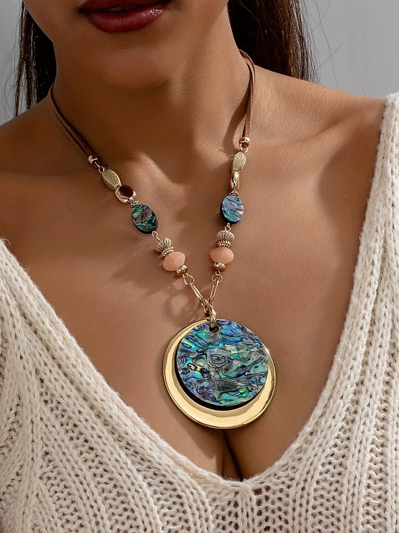 The Bohemian Vintage Necklace is a bold yet earthy statement piece that brings vintage charm to your everyday wardrobe. Featuring a striking abalone shell pendant with rich iridescent tones, this necklace channels effortless boho style in a timeless silhouette.