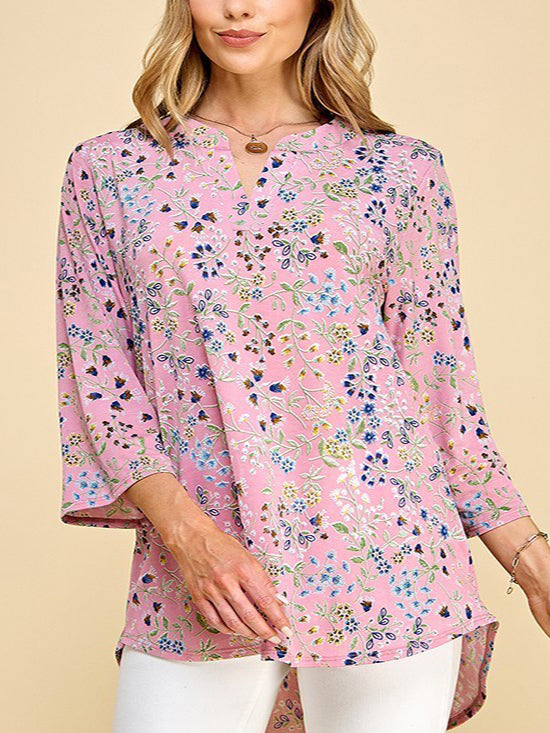 Laura Plus Size Tunic Top in Pink Floral
