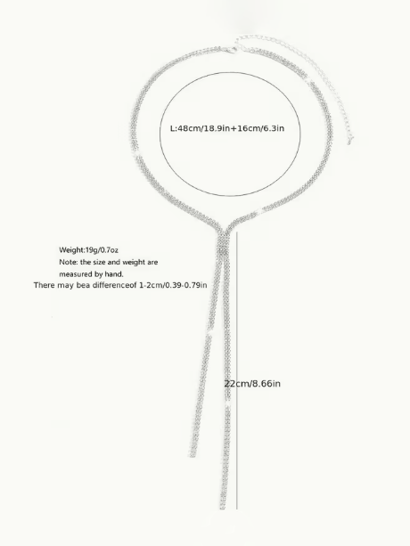 The Elegant V-Neck Necklace is designed to add instant glamour to your look. Its delicate Y-shape drop and shimmering rhinestones catch the light beautifully, creating a sophisticated statement that pairs effortlessly with evening gowns, cocktail dresses, or even a sleek blazer for a modern edge. Lightweight at just 19 g (0.7 oz), it’s comfortable enough to wear all night without weighing you down.