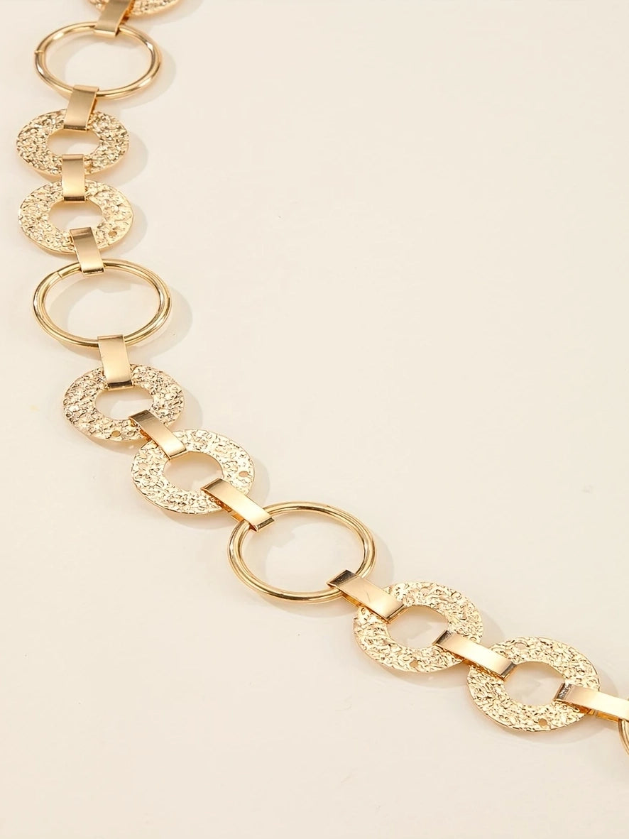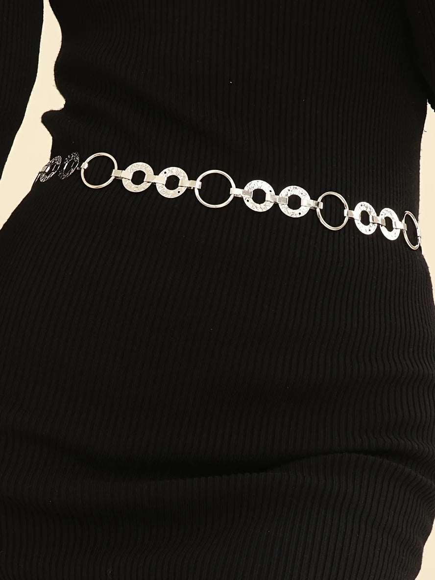 Elevate your outfit with this Plus Size Chain Belt featuring circular discs and an elegant gemstone-inspired design. The adjustable chain closure allows for a customized fit, making it a stylish and versatile accessory for your curves.