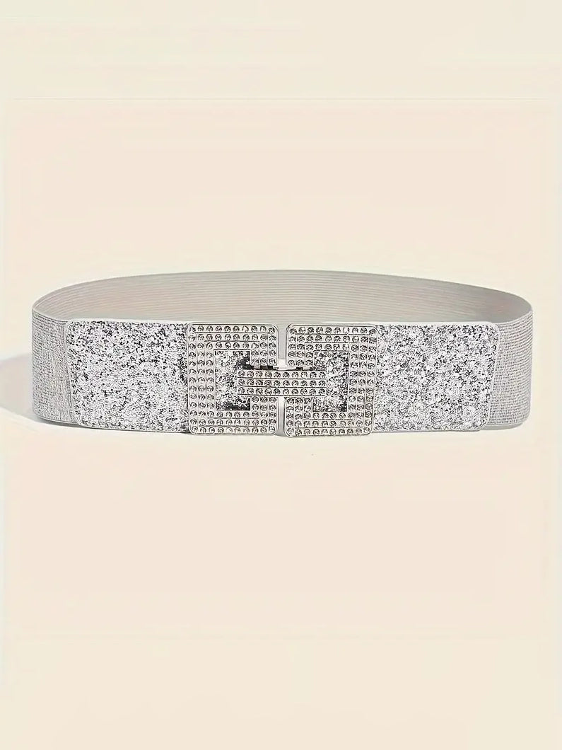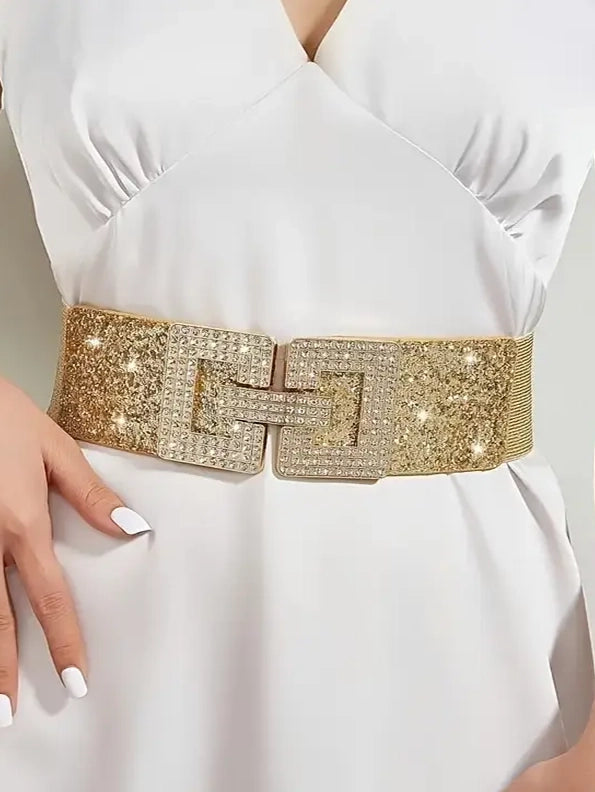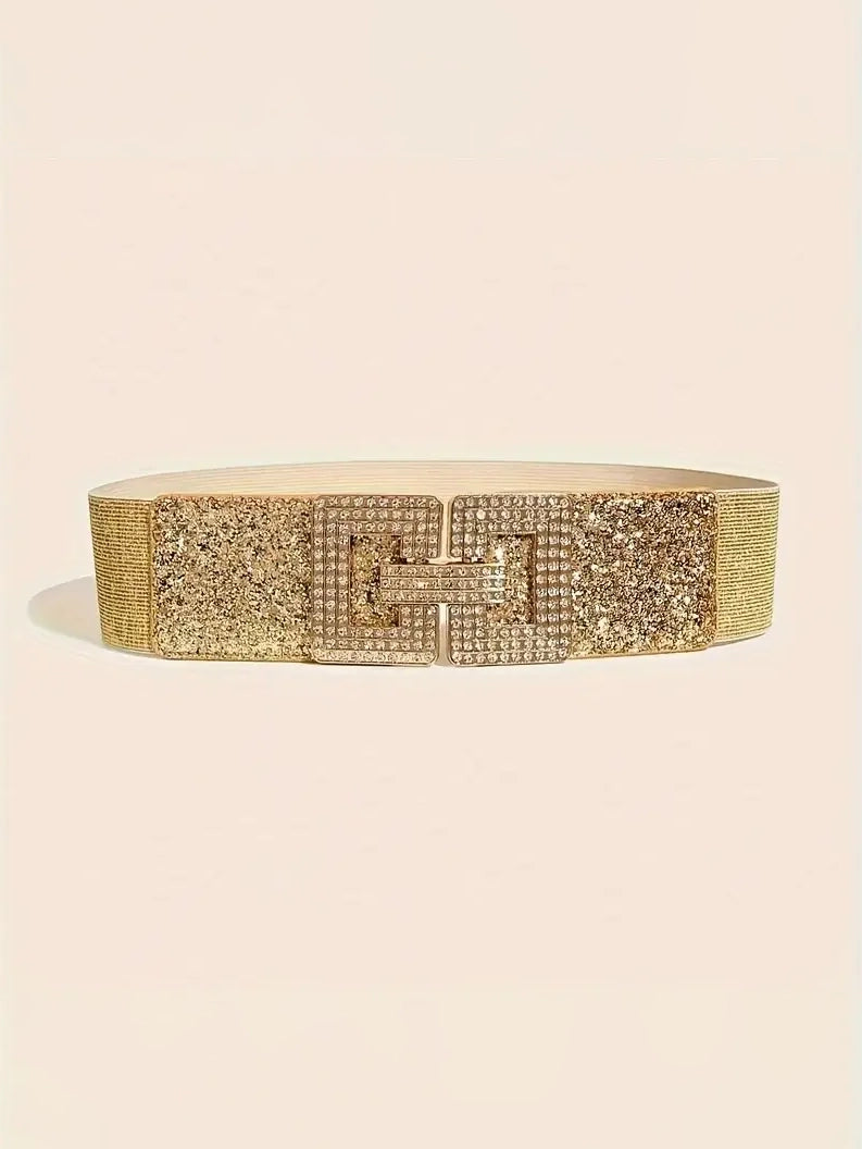 Plus Size Elastic Wide Belt with Rhinestone G Clasp In Metallics