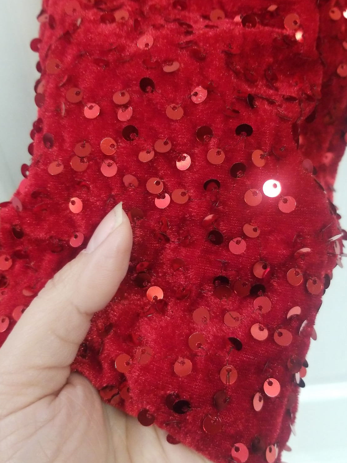 Fully embellished with micro-sequins for maximum shine; smooth inner lining for comfort and easy layering. 100% Polyester.