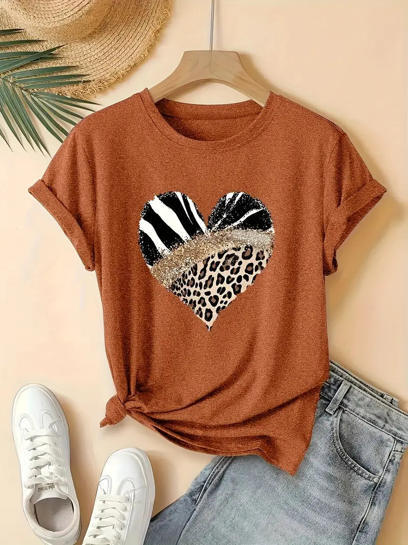 The Wild Heart Plus Size Graphic Tee brings playful personality to your casual wardrobe. Featuring a bold heart design with zebra, glitter, and leopard print accents, this relaxed-fit top pairs perfectly with denim or leggings for an effortlessly chic look. The short sleeves can be worn rolled for a laid-back vibe or unrolled for a cleaner finish, giving you two looks in one.